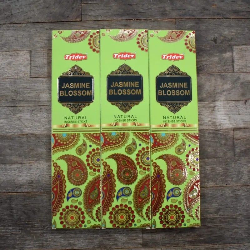 Las cajas de incienso Tridev son muy apreciadas por su excelente calidad y fragancias exclusivas. Cada caja incluye 10 varitas de incienso de grosor moderado, con una duración de quema que varía entre 45 y 55 minutos por varita. El peso de la caja varía entre 35 y 38 gramos. Incluye un incensario de cerámica circular.